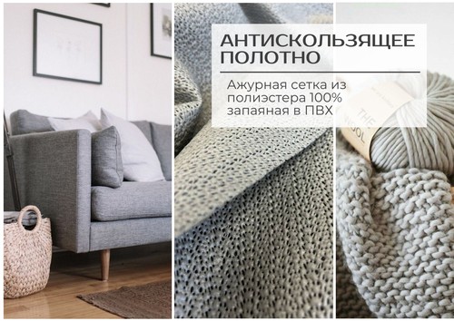 Описание Антискользящая ткань - разделительная «прокладка» между поверхностями. Предназначено для использования в качестве вставок в подушках мягкой мебели Антискользящая ткань пришивается на нижнюю сторону подушки, либо из него вырезают коврик, который кладут между подушкой и основанием. Его структура увеличивает сопротивление к скольжению. Он не прилипает, как это делает, например, лента-липучка. Вместо этого, работая под нагрузкой, ткань не дает подушкам сдвигаться. Главное преимущество ткани то, что она позволяет существенно унифицировать технологический процесс изготовления мебели, исключив использование молний, липучек и пр., и добавляет удобство при эксплуатации потребителю. Антискользящая ткань обладает ВОЗДУХОПРОНИЦАЕМЫМ эффектом. Данные полотна достаточно пластичны и легко скатываются в рулон, легко укладываются и не требуют особого ухода.